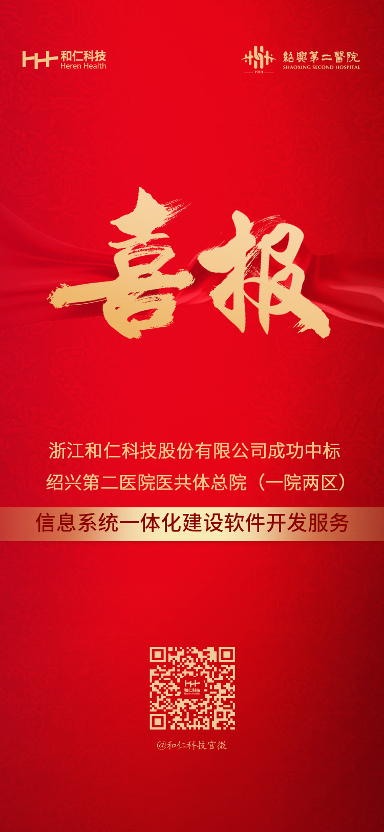 中標(biāo)喜訊 | 和仁科技成功中標(biāo)紹興第二醫(yī)院醫(yī)共體總院(一院兩區(qū))信息系統(tǒng)一體化建設(shè)軟件開發(fā)服務(wù)