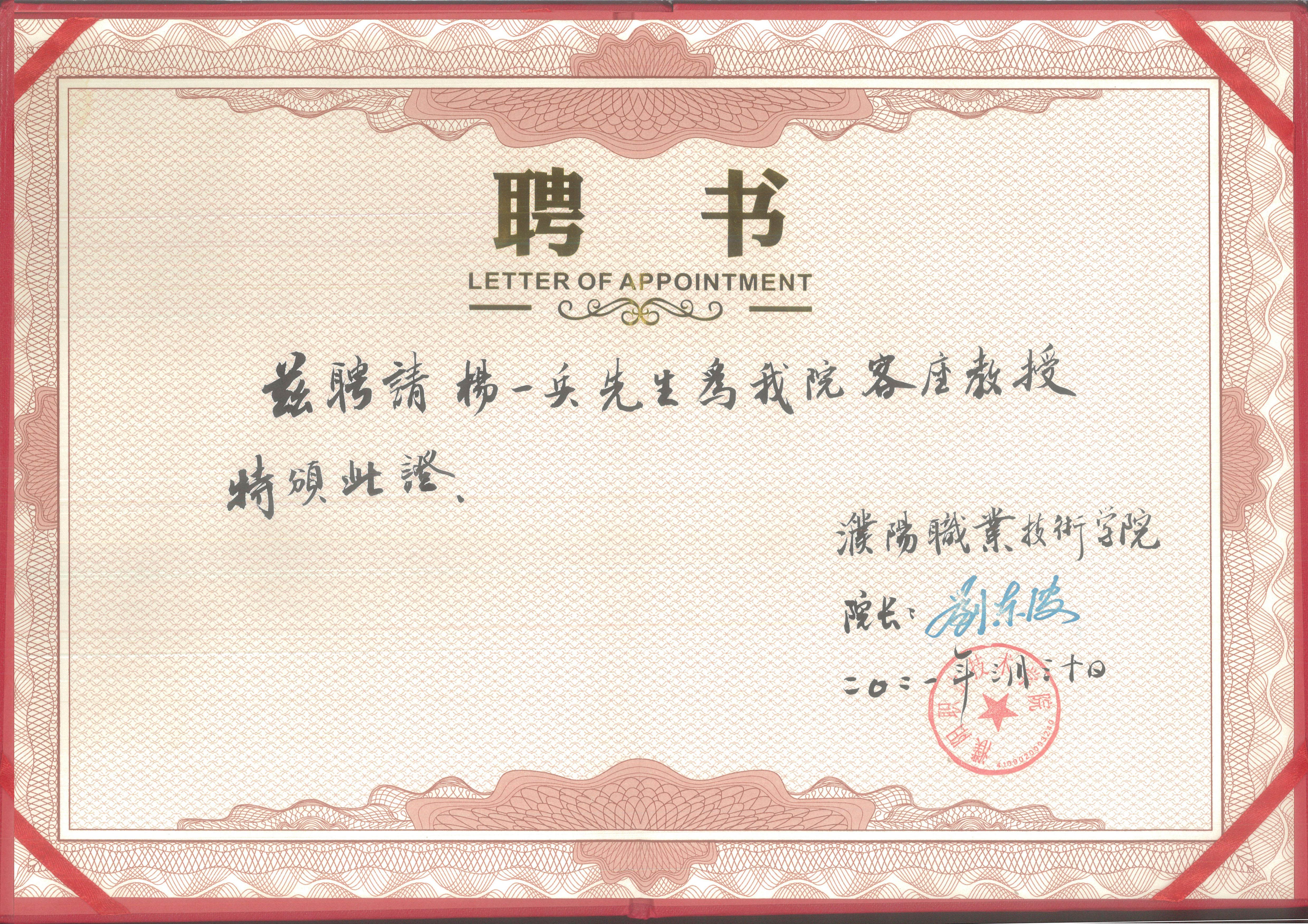 和仁科技董事長(zhǎng)楊一兵博士受邀擔(dān)任濮陽(yáng)職業(yè)技術(shù)學(xué)院客座教授
